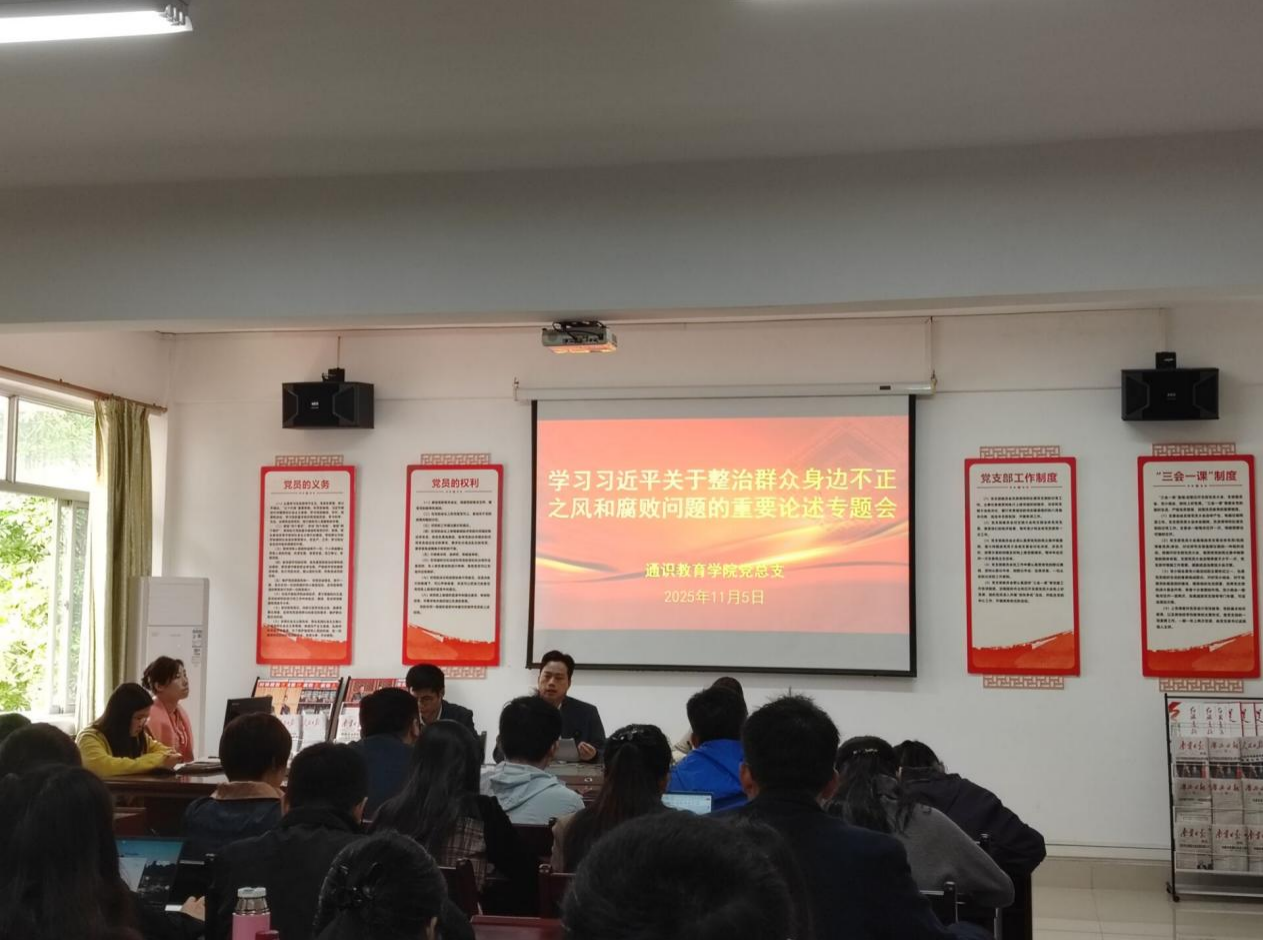 11月5日,通识教育学院在综合楼339-3会议室开展学习习近平关于整治群众身边不正之风和腐败问题的重要论述专题会。会议由学院副院长阳代军主持,全体教职工参会。